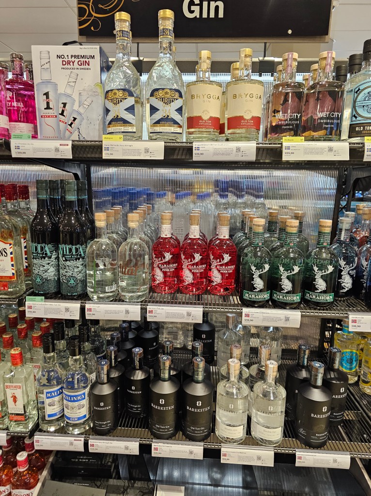– Alcohol is also very expensive at a restaurant, and anything over a small % of alcohol like beer or cider must be bought at a bar or at the state liquor store. So we made a wine/gin run to sample them at home.