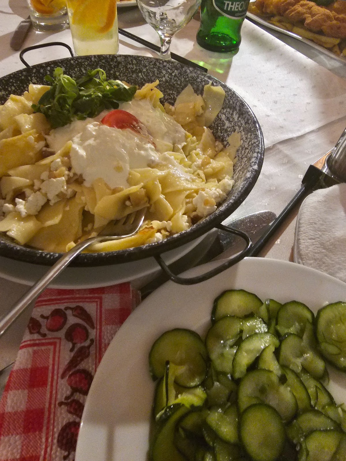 A few things to know about Hungarian meals: they are usually served with bread and something fermented or sour (cucumber salad, pickles, sauerkraut), even if it seems vegetarian it probably has lard or bacon in it, and it’s all quite delicious! Some items bend the norms, like a meaty crepe (Husos Palacsinta) or a cold cherry soup, but it’s worth a try. Turo is a very common ingredient in sweet and savory food, it is a soft mild curd cheese like a ricotta.